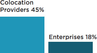 The survey further pointed out that the colocation providers showed continued rapid growth—as shown in the percentage of new data center builds by colocation providers versus enterprises.