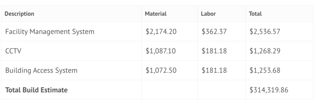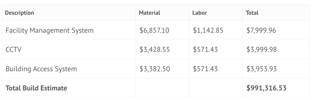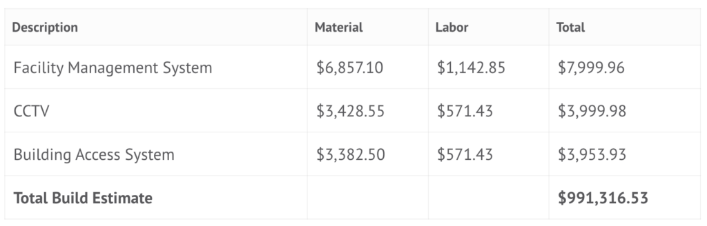 The “Empty Space” Component is added to the “kW cost” above at $190/sq. ft.