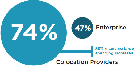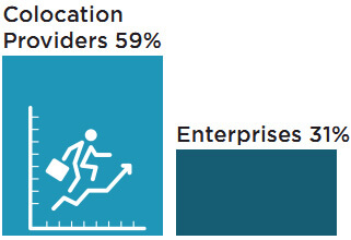 The survey further pointed out that the colocation providers showed continued rapid growth—as shown in the percentage of new data center builds by colocation providers versus enterprises.