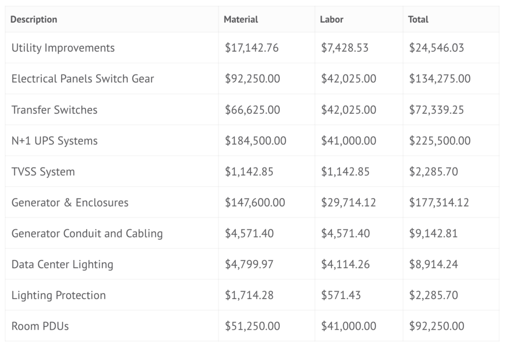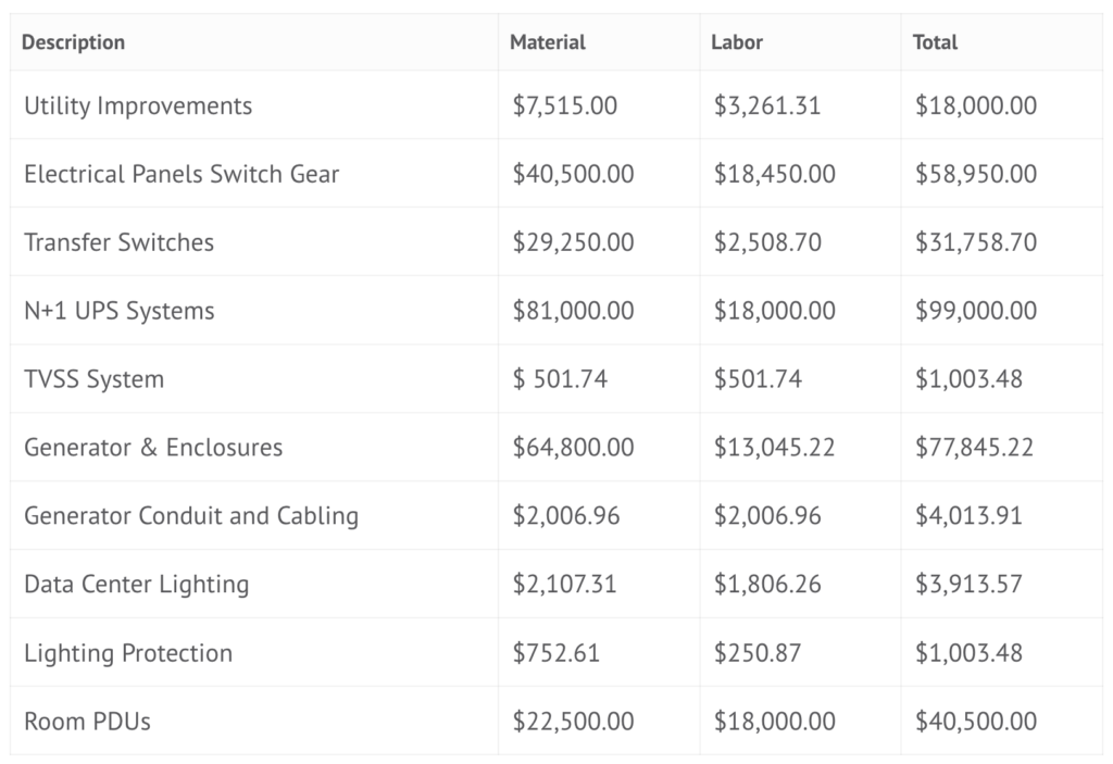 - Tier IV: $25,000/kW of redundant UPS capacity for IT